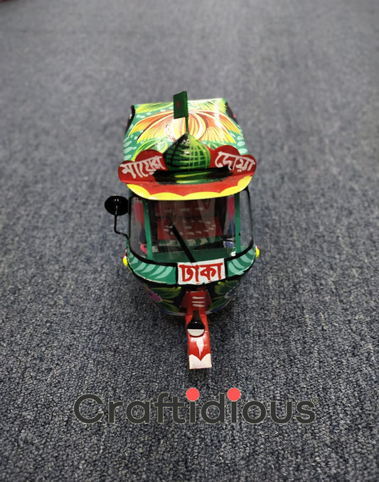 Home Decor Hand Painted Metal Handmade Baby Taxi (Auto Rickshaw) Showpiece