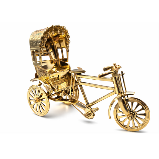 Handcrafted Small Golden Brass Rickshaw Showpiece