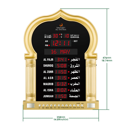 Al-Fatiha Azan Clock Large Wall/Table Automatic Muslim Azan Clock