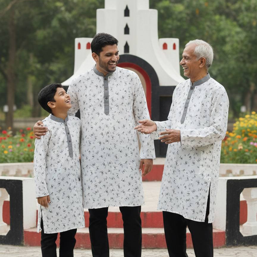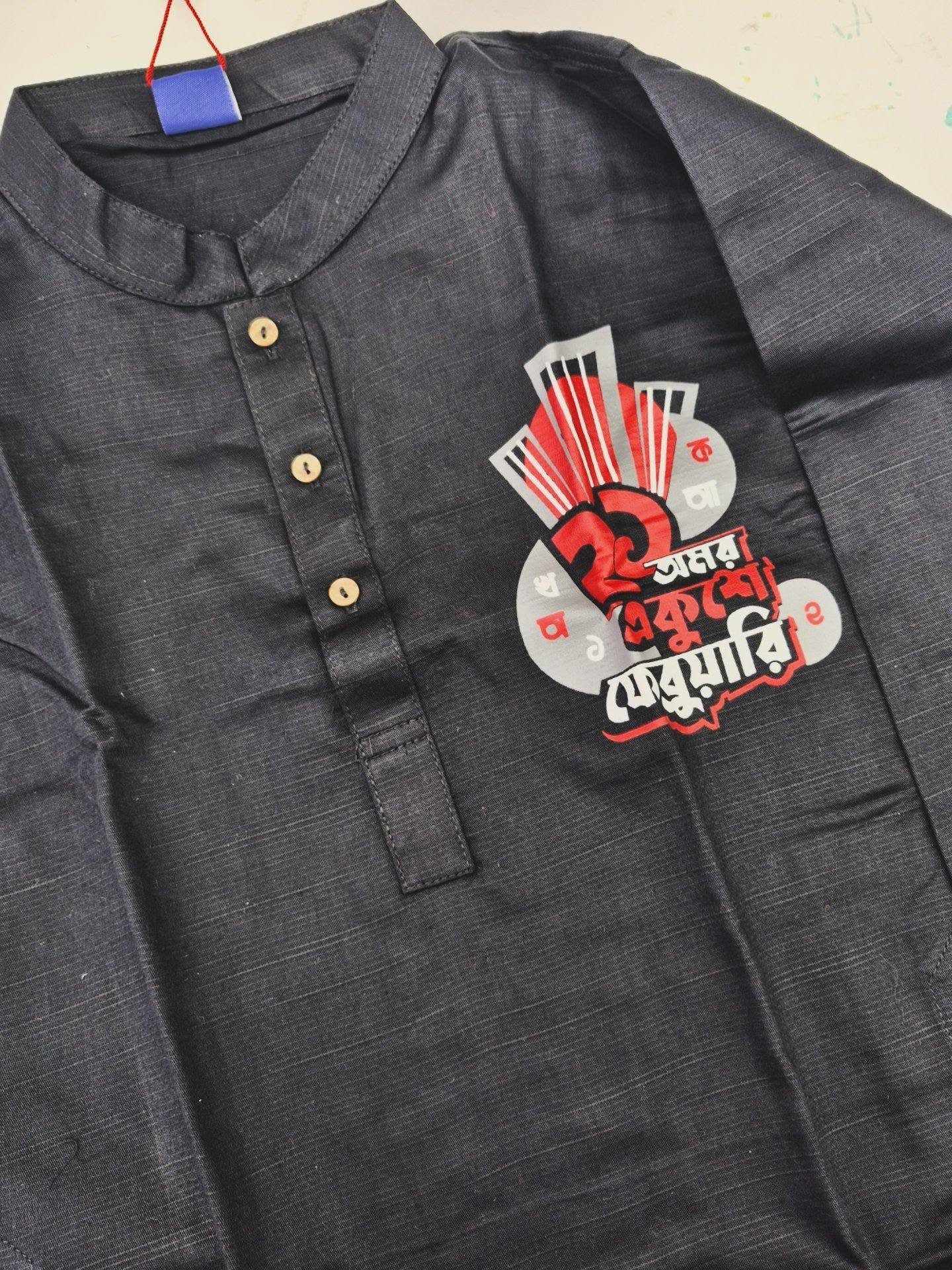 Celebrate the spirit of 21 February (International Mother Language Day) with this Ekushey February Panjabi featuring beautiful Bangla typography prints. Soft, comfortable, and perfect for cultural events, Language Martyrs’ Day, or everyday wear.