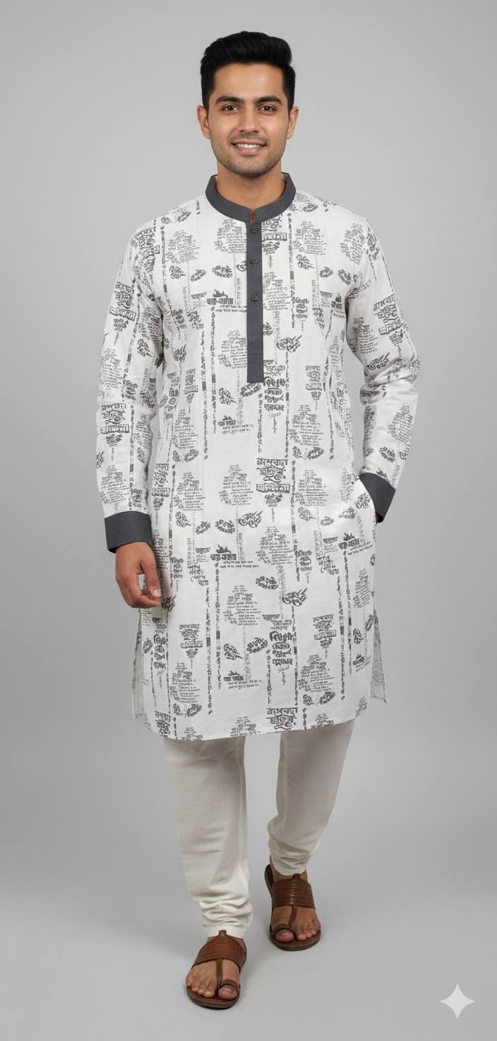 Ekushey February Panjabi | Bangla Typography Panjabi | 21 February Outfit | Language Martyrs Day Panjabi | Black & White Printed Panjabi